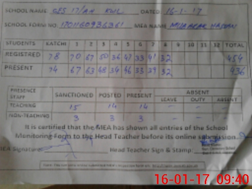 | Attendance Register | Head Teacher | MEA with School | Visit Proof |