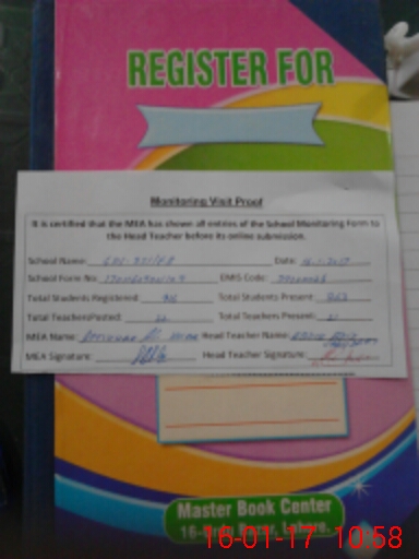 | Attendance Register | Head Teacher | MEA with School | Visit Proof |