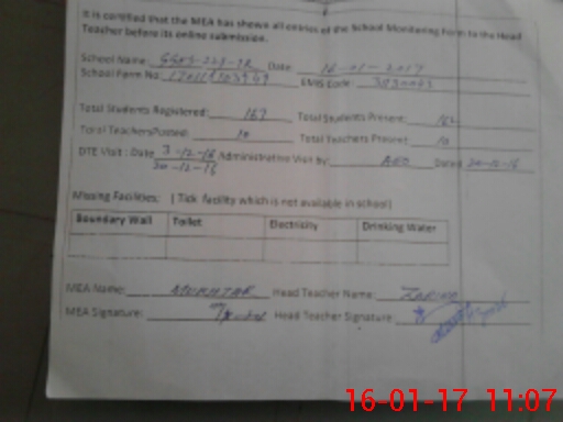 | Certified that this School was Inspected by the Undersigned MEA/DMO Today and the Information Stated Above is as Per Record. | |||||