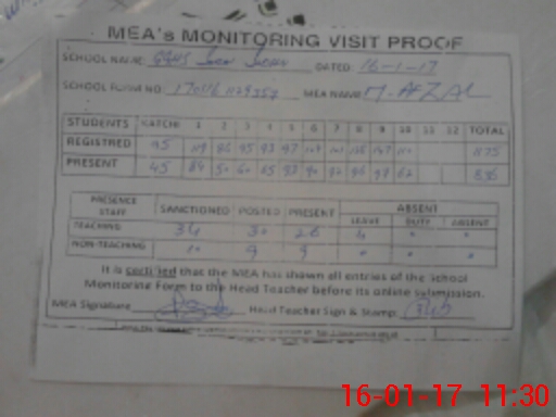 | Attendance Register | Head Teacher | MEA with School | Visit Proof |