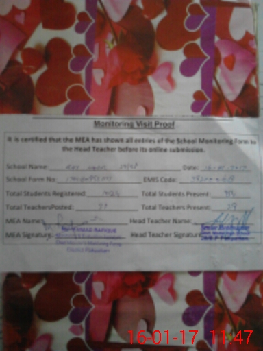 | Certified that this School was Inspected by the Undersigned MEA/DMO Today and the Information Stated Above is as Per Record. | |||||