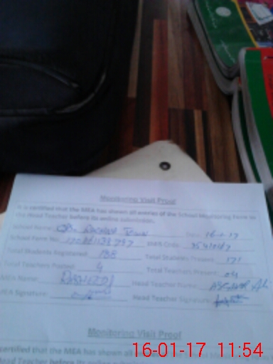 | Attendance Register | Head Teacher | MEA with School | Visit Proof |