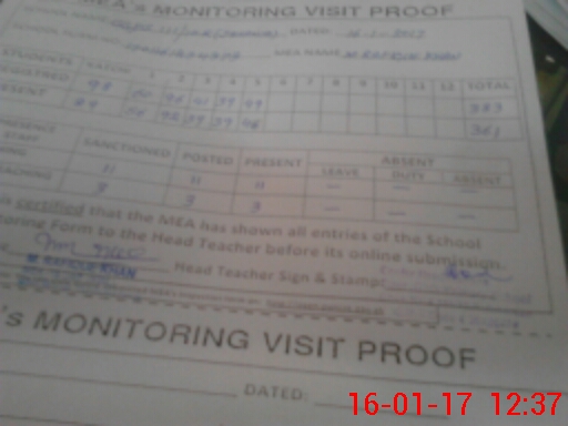 | Attendance Register | Head Teacher | MEA with School | Visit Proof |