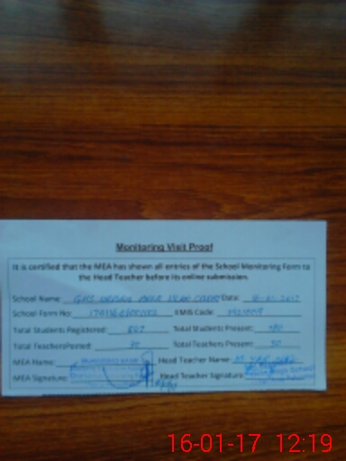 | Certified that this School was Inspected by the Undersigned MEA/DMO Today and the Information Stated Above is as Per Record. | |||||