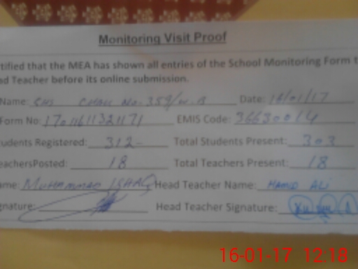 | EMIS Code: 36630014 | Name of School: GHS ISLAMIA 359/WB | |||