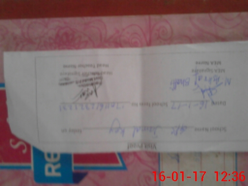 | School Visited by School Health & Nutrition Supervisor (No. of Visits) | 1 | Name1: | Azhar Tanveer | Name2: | |