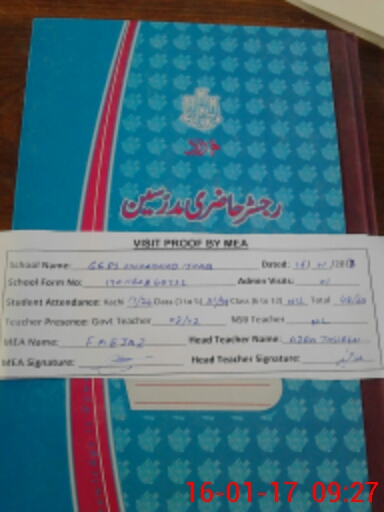 | Attendance Register | Head Teacher | MEA with School | Visit Proof |