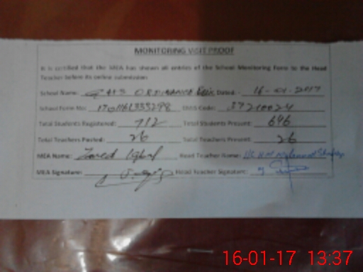 | Certified that this School was Inspected by the Undersigned MEA/DMO Today and the Information Stated Above is as Per Record. | |||||