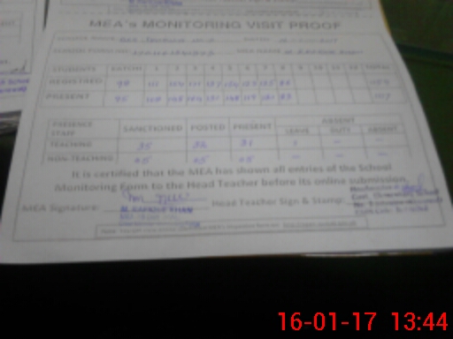 | Attendance Register | Head Teacher | MEA with School | Visit Proof |