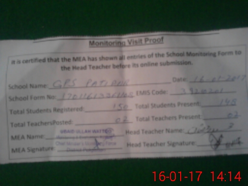 | EMIS Code: 39210201 | Name of School: GPS PATI PUR PO KUMHARI WALA PAKPATTAN | |||