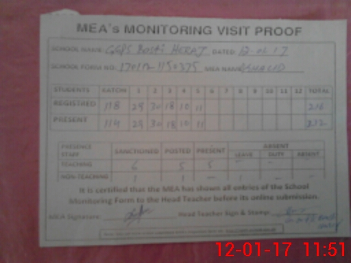 | Attendance Register | Head Teacher | MEA with School | Visit Proof |
