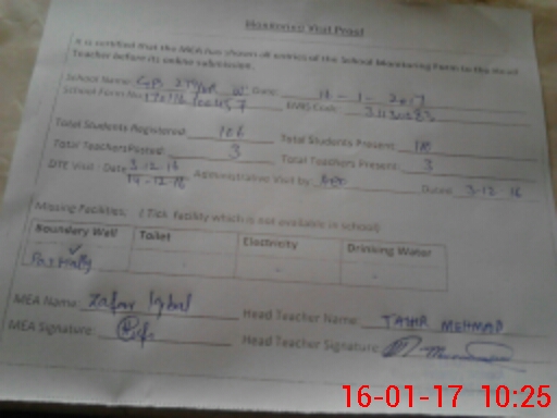 | Certified that this School was Inspected by the Undersigned MEA/DMO Today and the Information Stated Above is as Per Record. | |||||