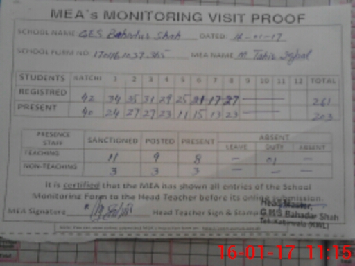 | EMIS Code: 36410067 | Name of School: GES BAHADUR SHAH, P/O MOHRI PUR, SARAI SIDHU | |||
