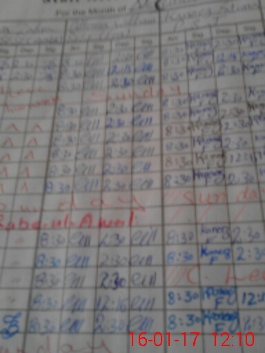 | CNIC | Full Name | Designation | R/C | Absence During Last Calender Month |