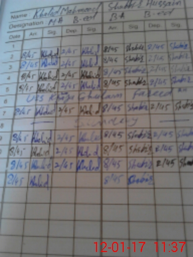 | CNIC | Full Name | Designation | R/C | Absence During Last Calender Month |