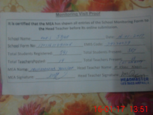| Certified that this School was Inspected by the Undersigned MEA/DMO Today and the Information Stated Above is as Per Record. | |||||
