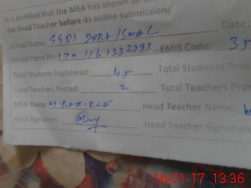 | Attendance Register | Head Teacher | MEA with School | Visit Proof |