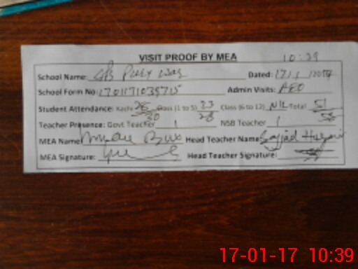 | Attendance Register | Head Teacher | MEA with School | Visit Proof |