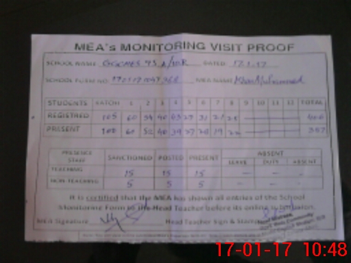 | Attendance Register | Head Teacher | MEA with School | Visit Proof |