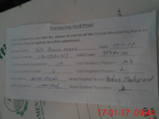| EMIS Code: 35410160 | Name of School: GPS BASHIR MODEL RANA TOWN | |||