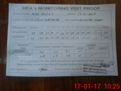 | Certified that this School was Inspected by the Undersigned MEA/DMO Today and the Information Stated Above is as Per Record. | |||||