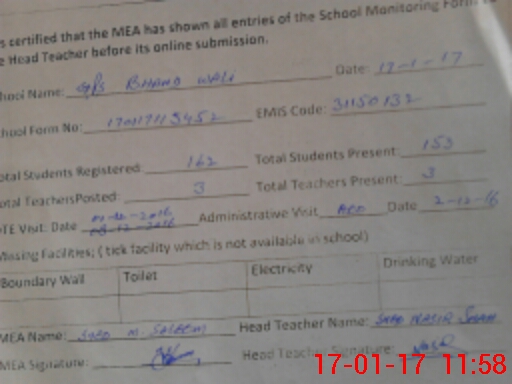 | Name: Mu**** Ab**** Designation: (School Headmaster's/Headmistress's) PST Phone/Cell Number: 03**** |