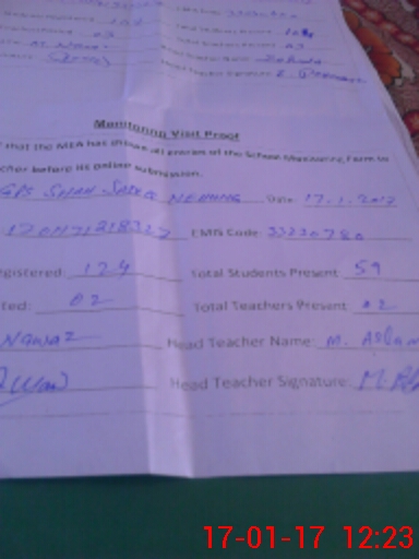 | EMIS Code: 33230780 | Name of School: GPS SHAH SADIQ NIHUNG | |||