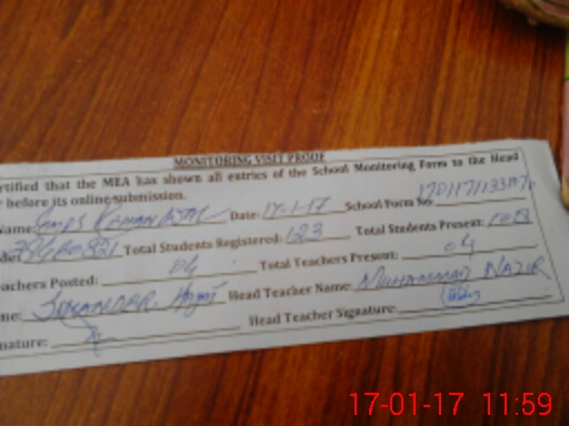 | Attendance Register | Head Teacher | MEA with School | Visit Proof |