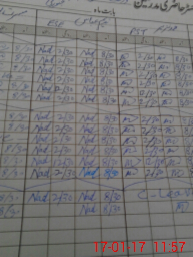 | CNIC | Full Name | Designation | R/C | Absence During Last Calender Month |