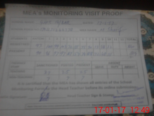 | Attendance Register | Head Teacher | MEA with School | Visit Proof |