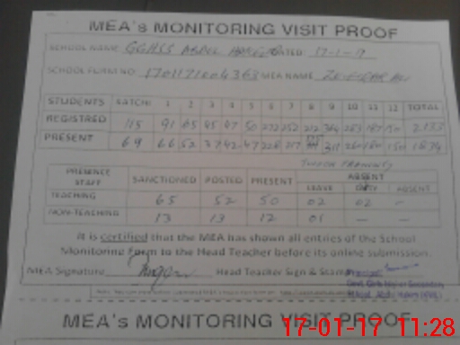 | Attendance Register | Head Teacher | MEA with School | Visit Proof |