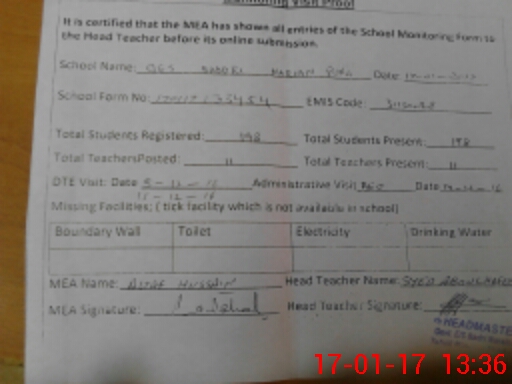 | Certified that this School was Inspected by the Undersigned MEA/DMO Today and the Information Stated Above is as Per Record. | |||||