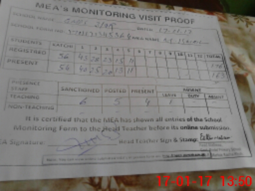 | Attendance Register | Head Teacher | MEA with School | Visit Proof |