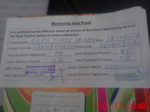 | EMIS Code: 36140207 | Name of School: GGPS TIBBI SAIDAN SHAH WALI | |||