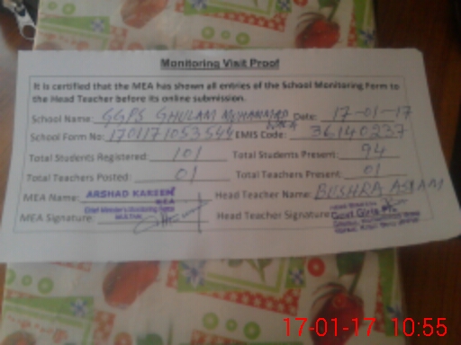 | EMIS Code: 36140237 | Name of School: GGPS GHULAM MOHAMMAD WALA | |||