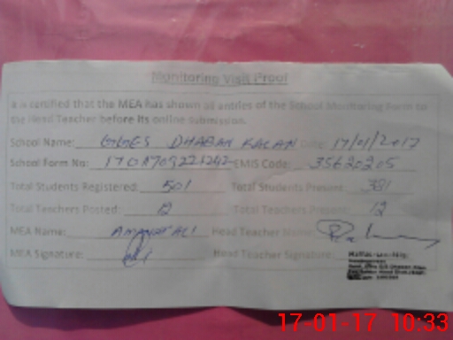 | Certified that this School was Inspected by the Undersigned MEA/DMO Today and the Information Stated Above is as Per Record. | |||||