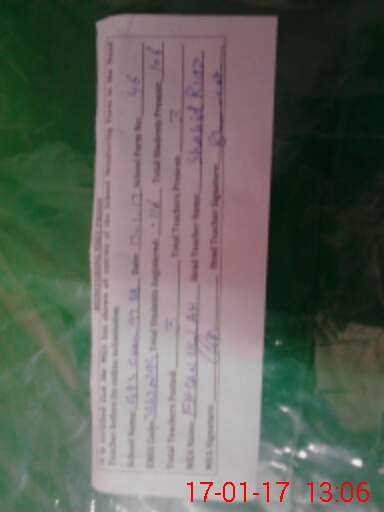 | School Visited by School Health & Nutrition Supervisor (No. of Visits) | 1 | Name1: | TARIQ MASOOD | Name2: | |