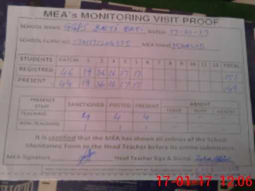 | Certified that this School was Inspected by the Undersigned MEA/DMO Today and the Information Stated Above is as Per Record. | |||||