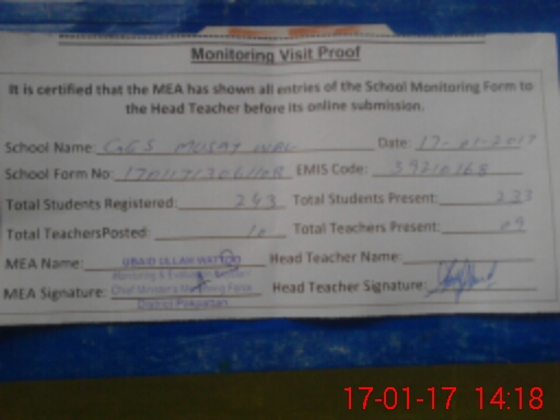 | EMIS Code: 39210168 | Name of School: GHS MUSAY WAL P/O 39/SP PAKPATTAN | |||