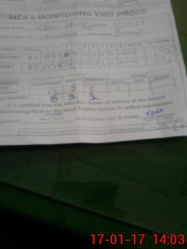 | Attendance Register | Head Teacher | MEA with School | Visit Proof |