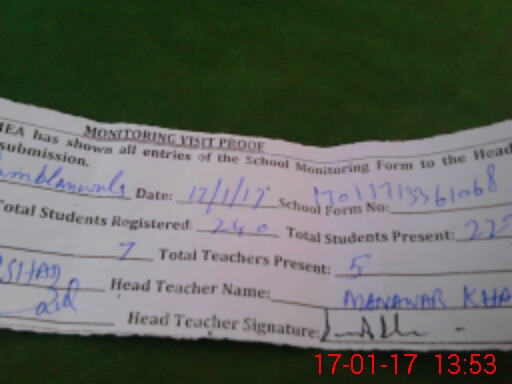 | Attendance Register | Head Teacher | MEA with School | Visit Proof |