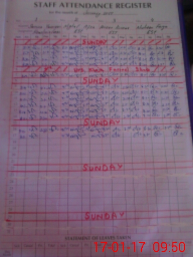 | CNIC | Full Name | Designation | R/C | Absence During Last Calender Month |