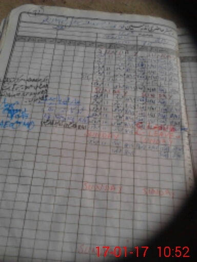 | CNIC | Full Name | Designation | R/C | Absence During Last Calender Month |
