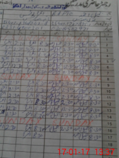 | CNIC | Full Name | Designation | R/C | Absence During Last Calender Month |