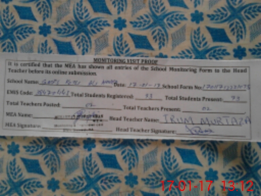 | Attendance Register | Head Teacher | MEA with School | Visit Proof |