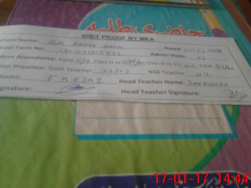 | Remarks (Use Separate Page if Required): Teacher Salsh ud din was transferred from this school to GES Hafiz Nagar in April 2014 His name is still in tab Please delete his name | |||||