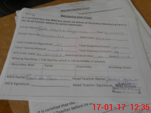 | Attendance Register | Head Teacher | MEA with School | Visit Proof |