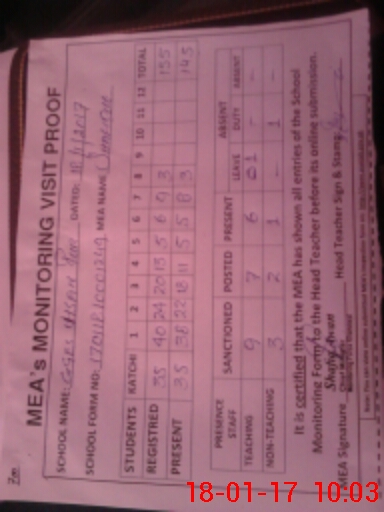 | Attendance Register | Head Teacher | MEA with School | Visit Proof |