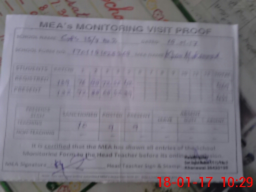 | Attendance Register | Head Teacher | MEA with School | Visit Proof |