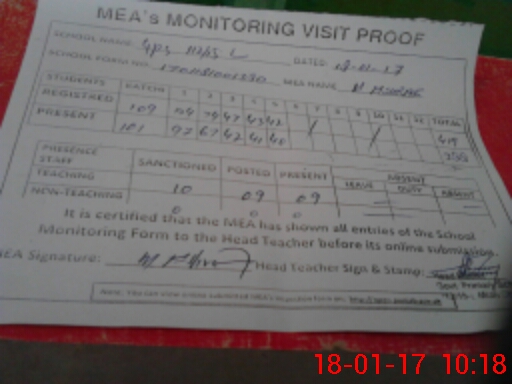 | Attendance Register | Head Teacher | MEA with School | Visit Proof |